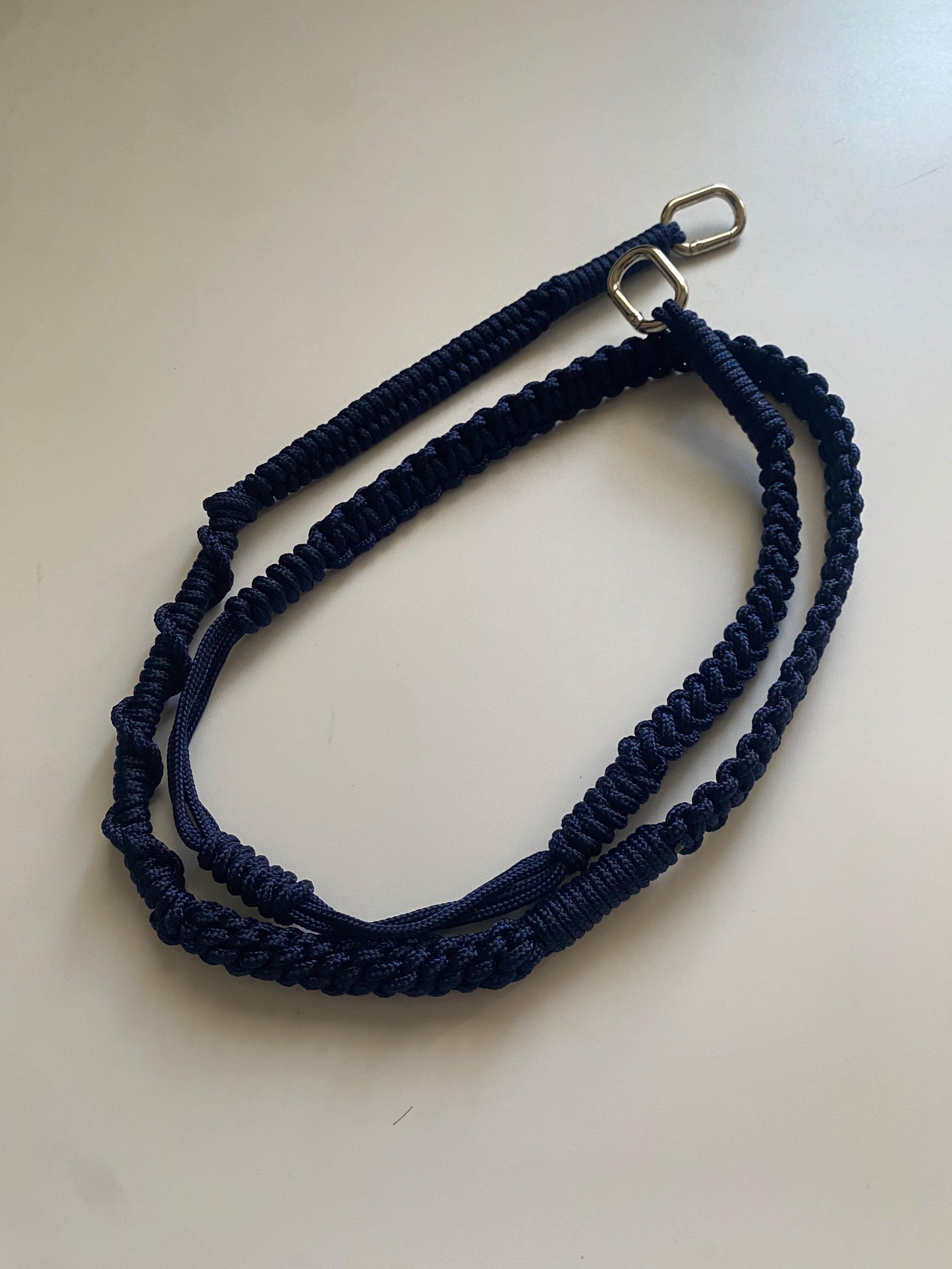 3mmコードを使用し、単色で仕上げました。いろんな編み方を混ぜることで、シンプルだけど存在感のあるストラップです。