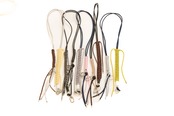 重厚感のあるブラックの肩紐に、グリッターコードとメタルパーツでキラキラのストラップに仕上げました。